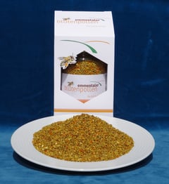 Der Emmentaler Blütenpollen wird im Schweizer Qualitätsglas zu 200 g verkauft.